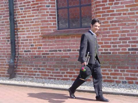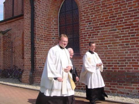 Kirchenpfelger Werner Kohl begrüßt den Primizianten |
