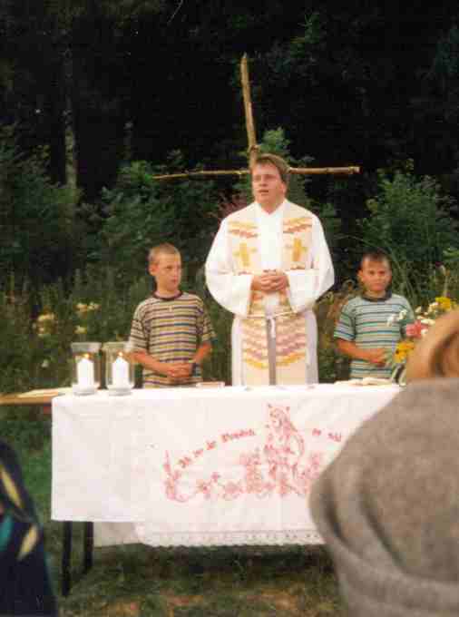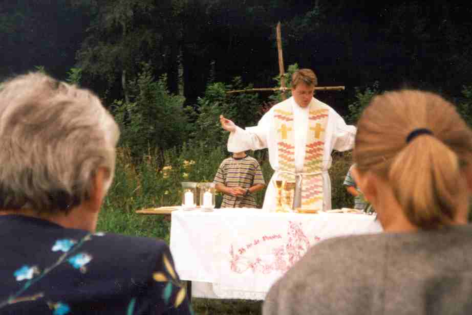 mit den Ministranten gemeinsam auf dem Zeltlagerplatz Eucharistie zu feiern.